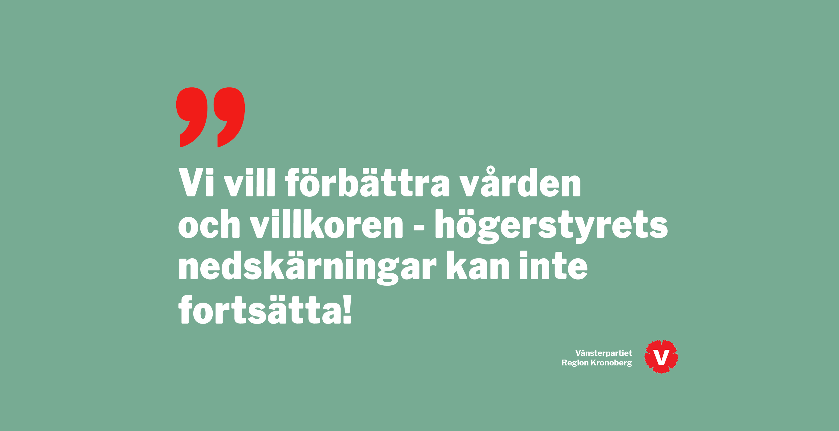 Sjukvården var väljarnas viktigaste fråga i riksdagsvalet 2022. De förväntar sig att de som styr tar ansvar och gör det som krävs att för rädda sjukvården. Svenska folket vill inte ha nedskärningar och försämringar i vården, de vill ha en sjukvård som är bättre än den vi har idag. När vårdkrisen slår till kan riksdag och regering inte bara passivt se på.